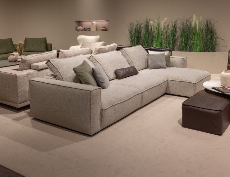 The Brera sofa is a unique piece of furniture designed for comfortable reclining rather than just sitting. It has a low and deep seating design with a curved end that adds to its bold appearance, making it an oversized and friendly sofa. The designers aimed to create an authentic lounge experience while offering everyday practicality by providing two optional back cushions. You can choose the regular cushion for a relaxed and carefree look or the back cushion with a click function that provides a more defined and controlled seating arrangement.