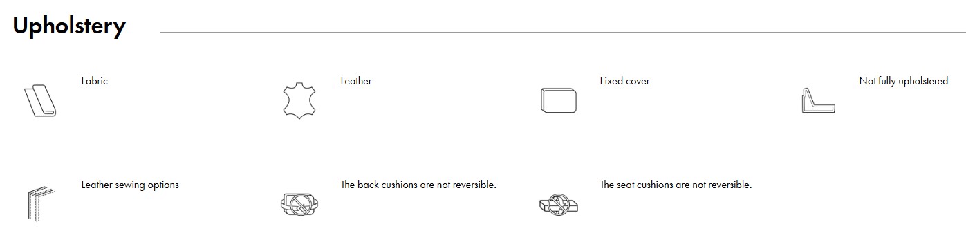 本款沙發可選擇布料或皮革面料, 原廠提供數百款歐盟認證頂級家具專用面料供 Furninova 客戶進行客製化打造專屬您的理想沙發; 歡迎向我們洽詢了解不同面料特性。