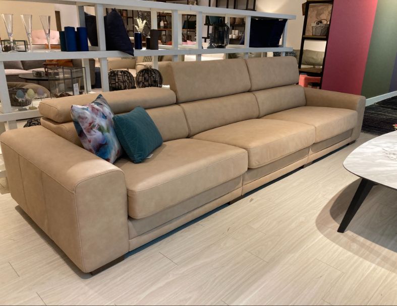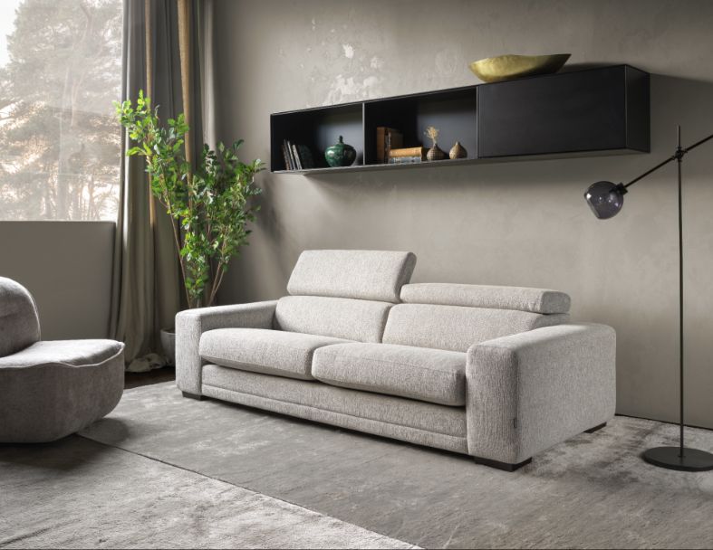 Flexibility and style come together in our shapeshifting sofa Ferrari. Folding the neck rest down makes the sofa more lounge focused and using them in their upright position lets you relax and lean back into the sofa, offering full support even for taller people.