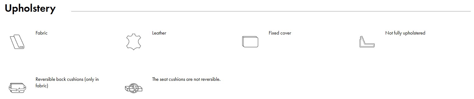 本款沙發可選擇布料或皮革面料, 原廠提供數百款歐盟認證頂級家具專用面料供 Furninova 客戶進行客製化打造專屬您的理想沙發; 歡迎向我們洽詢了解不同面料特性。